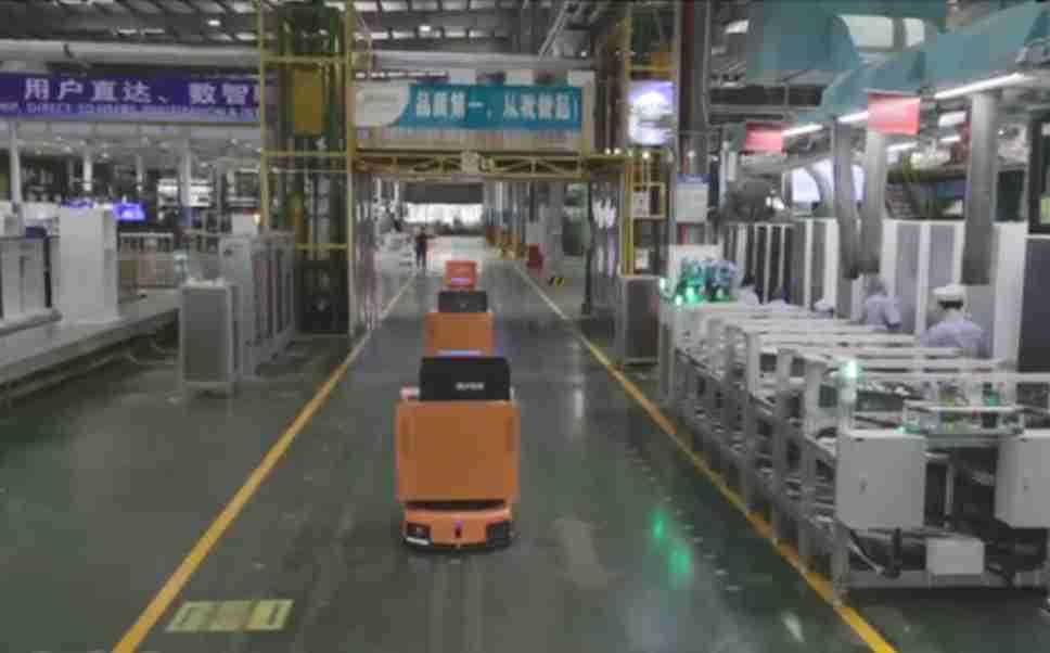 为车载冰箱物流配送打造的智能解决方案,,包含产中物流通过潜伏举升AMR搬运至线边,,,产后成品物流智能仓储,,流程包含产中物流智能齐套入库,,线边安灯叫料AMR智能配送至线边,,成品入库、、、出库,,,通过无人堆高车机器人,,,智能仓储管理替代人工作业管理,,,实现更高存储、、更高效率、、、更具柔性化的解决方案。。。。