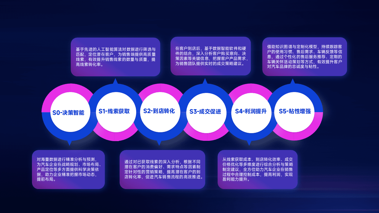 通过拓宽潜在客户来源、、、、优化线索分配并提高到店转化率,,,以增强销售效率。。。同时,,利用线索数据不断优化分析模型,,有效提升转化率,,,,扩大营销影响力。。。